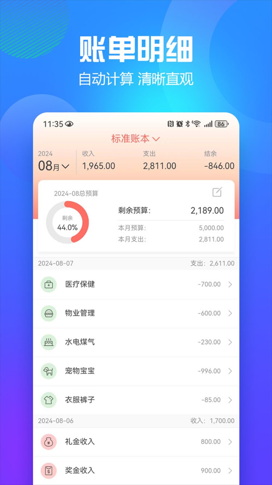 3. 操作便捷,支持手机随时记录日常开销,记账更高效。