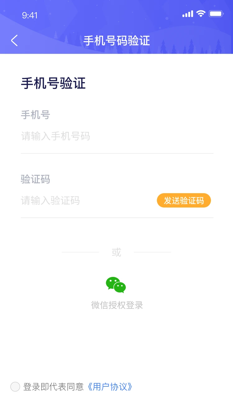 2. 输入手机号并获取验证码,完成登录操作
