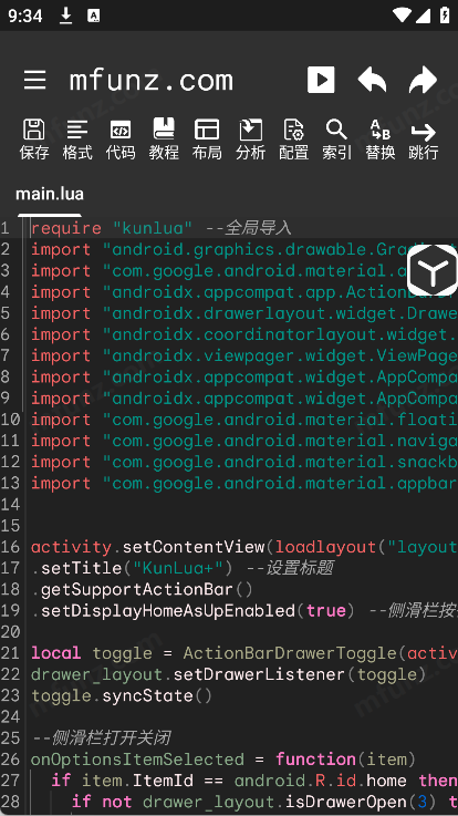 Kunlua+代码编辑器是一款专为Lua5.3语言设计的精简高效掌上编程助手,适用于移动设备上的代码编写、编译与运行。用户只需打开应用并创建新项目,即可快速进入代码编辑界面。内置多种常用代码模板,选择后自动生成功能框架,极大提升开发效率。支持实时运行测试,方便开发者即时查看结果,并可将完成的代码文件直接保存至手机或导出为ZIP格式分享。