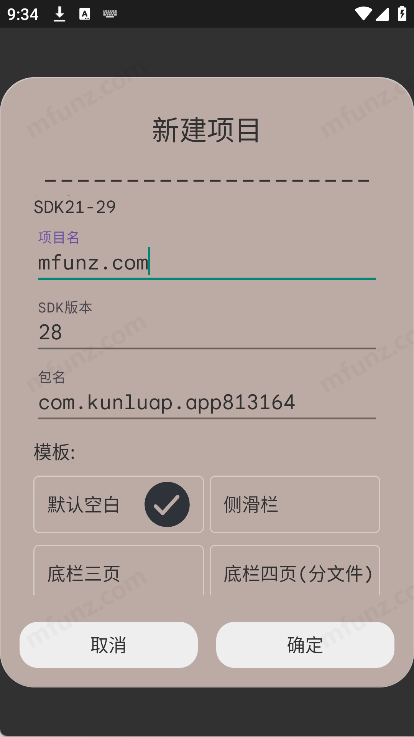 4. 输入项目名称并选择合适的代码模板,确认后进入编辑界面。