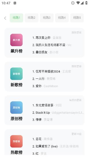 v2.4.0 版本:新增一条线路;首页界面全面改版;修复个性电台歌词显示异常问题;解决酷我音乐无法加载超过100首歌曲的bug;优化动画效果;统一权限请求机制,避免本地歌单重复刷新;修复云盘线路问题;优化线路2的歌源稳定性;修复桌面歌词显示异常。