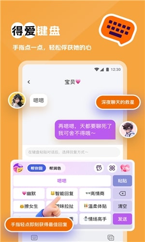 得爱键盘是一款智能恋爱聊天助手,专为提升用户在社交和恋爱场景中的沟通能力而设计。它融合AI智能分析技术,能够根据对话内容自动生成高情商、多样化的回复建议。软件提供多种人设模板,如温柔型、幽默型、高冷型等,满足不同用户的个性表达需求。同时内置丰富的恋爱攻略与话术资源,帮助用户学习恋爱技巧,轻松应对各种聊天场景,让每一次交流都更具魅力与温度。