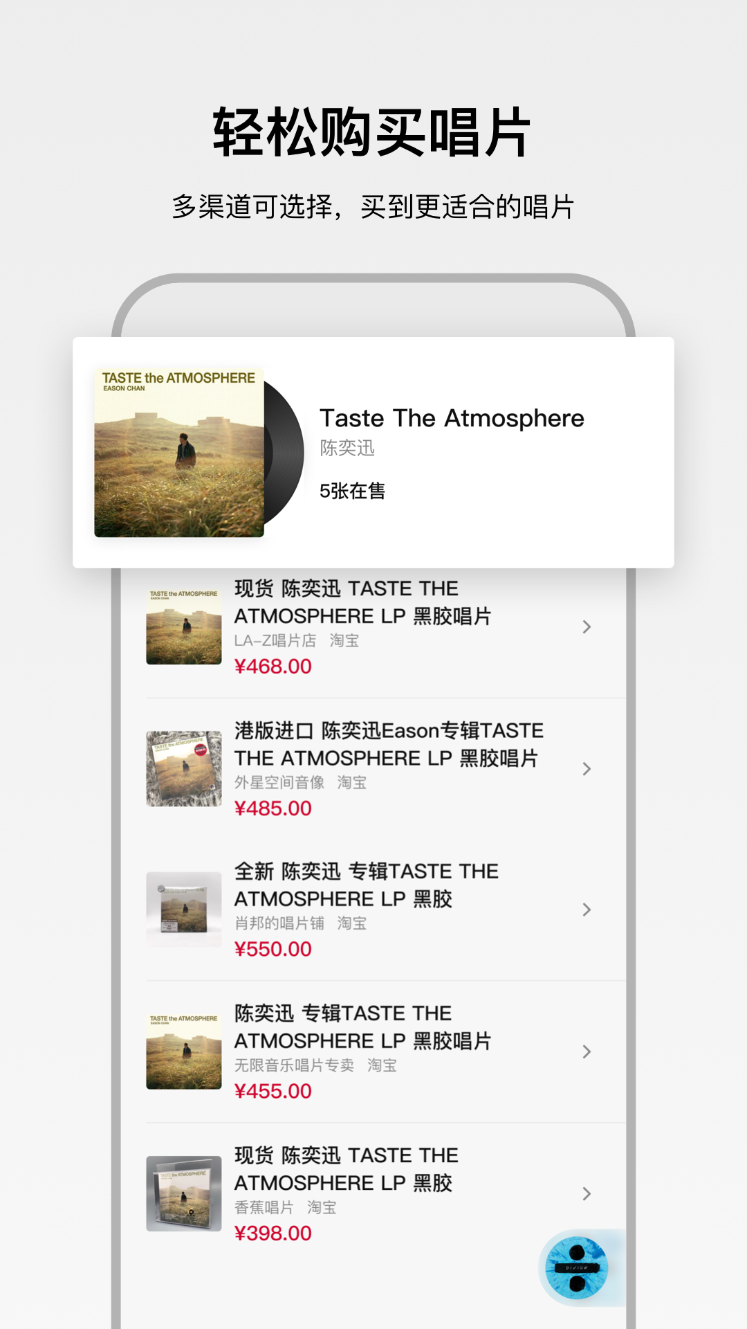 1. 新增唱片购买通道,部分唱片支持跳转第三方平台购买,满足收藏需求。