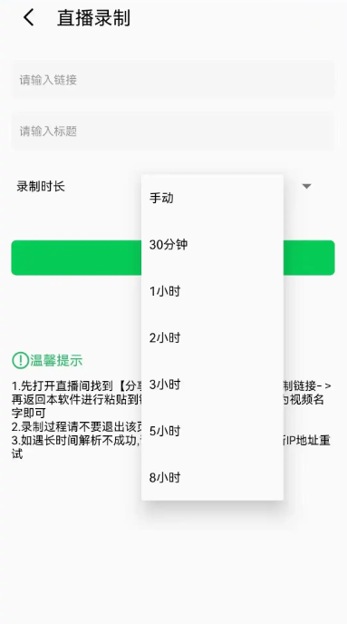 - 进入主界面后粘贴目标。。间分享链接,并设置。。时长。