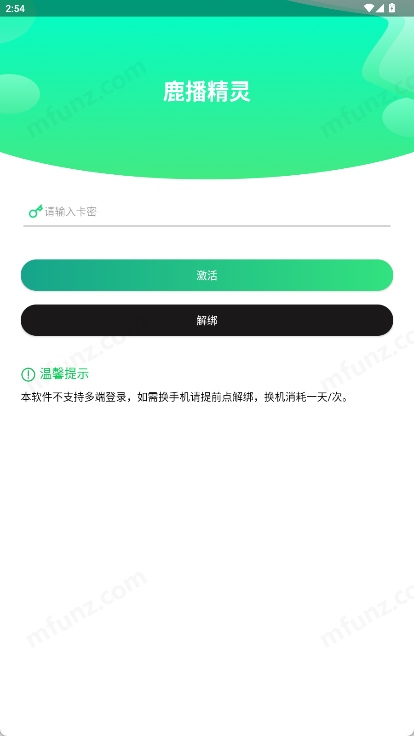 - 打开鹿播精灵App并授予必要权限,输入正版卡密完成激活绑定。