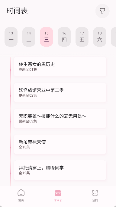 3. 通过“更新时间表”掌握每日新番上线情况。