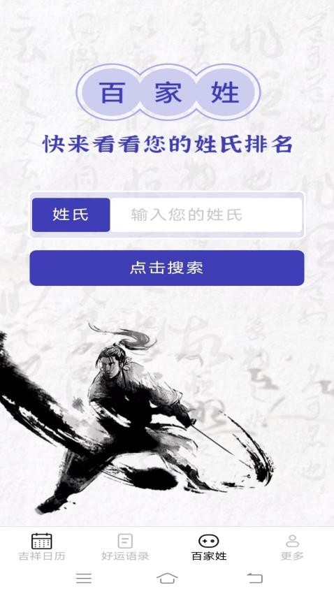 2. 点击底部导航栏中的“百家姓”选项,进入姓氏查询页面。