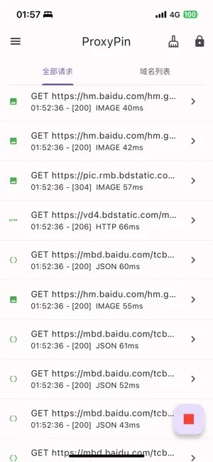 无需复杂配置,启动即捕获设备当前 App 的网络请求,支持动态过滤与高亮显示。