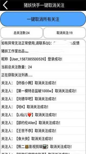 猪妖快手是一款专为用户提供帮助的快手点赞管理软件,软件的功能都可以免费操作,通过这款软件还可以帮助用户批量的取关对方,用户无需手动逐一取关,只需选择需要清理的账号,点击一键取关即可轻松完成操作,每一步的操作都非常简单,让用户的快手空间更加整洁、有序。