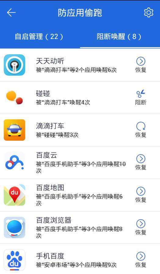 对于被阻断的各种软件还可以进行在线一键恢复,非常的方便快捷。