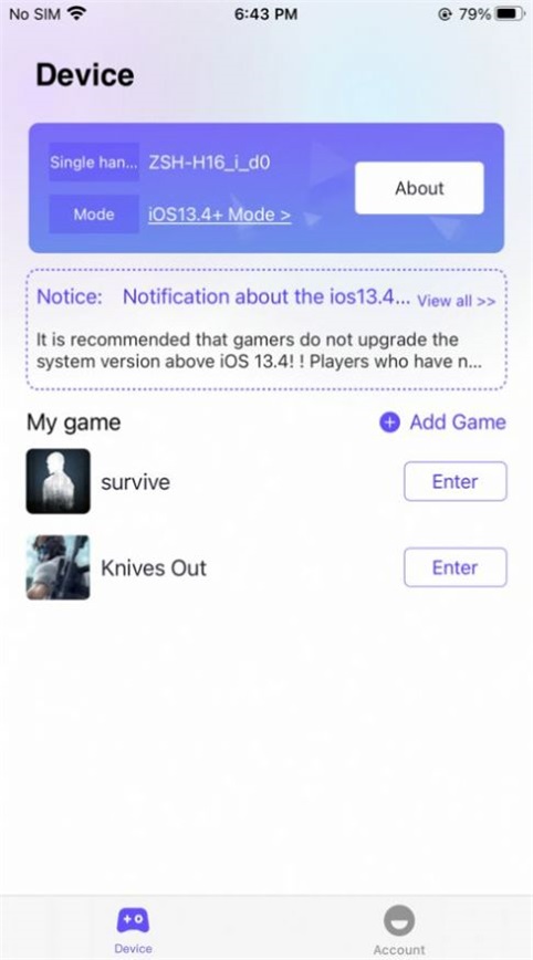 1、打开墨鱼游戏助手APP,先点击添加设备;