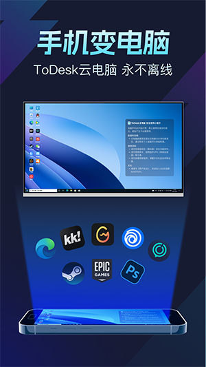 ToDesk云电脑是一款十分实用的远程控制软件,软件能远程控制其他电脑和手机,可控制家中的电脑,公司电脑,手机和平板设备,支持适配手机或平板的蓝牙键鼠操作,选择控制端和被控制端,登录账号就可轻松控制,适应性很强,切换服务器远程控制设备,再怎么操作都不会卡顿,极大的提升用户工作学习效率。