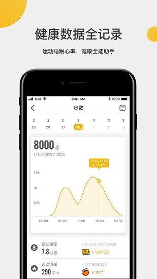 记录每天的运动、睡眠、卡路里消耗等信息。