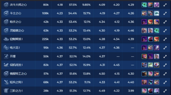 报心同理,玩4情报可!丢掉挂件寒冰。开摆/三阶之力在这个版本因为能玩3费阵容多所以也非常强势,窃贼/电火花通用性强,银色短兵过渡强,玩劫或者武器都行。
