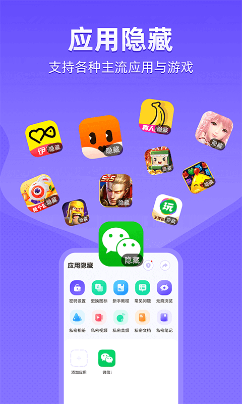 *随时都可以进行隐藏各种各样的应用和游戏。