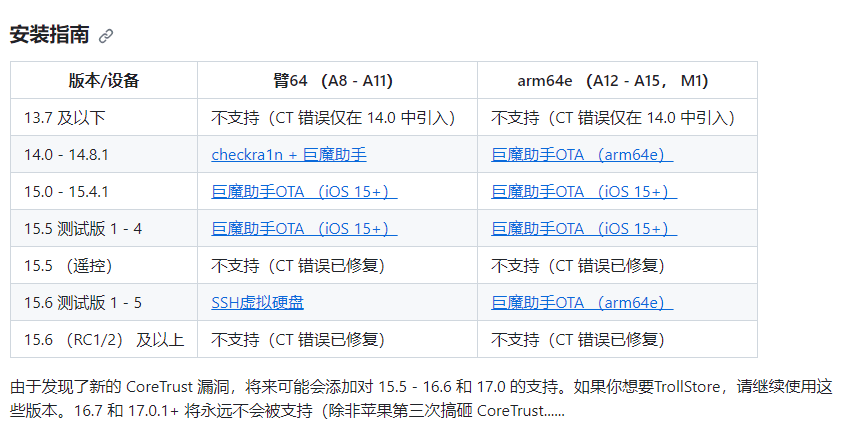 1、我先看看版本的兼容性,可以直接的打开本网站下载自己需要的版本号https://github.com/opa334/TrollStore/进行安装;