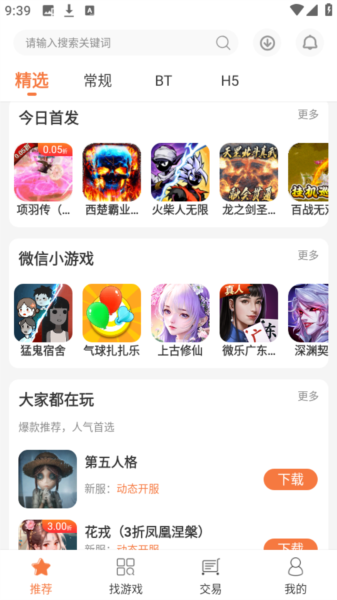 3、接着点击下方的“找游戏”,我们可以看到各种bt新游戏。