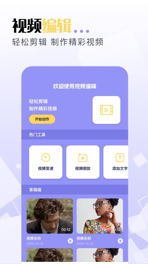 2. 点击“开始创作”,首次使用需授权相关手机权限。