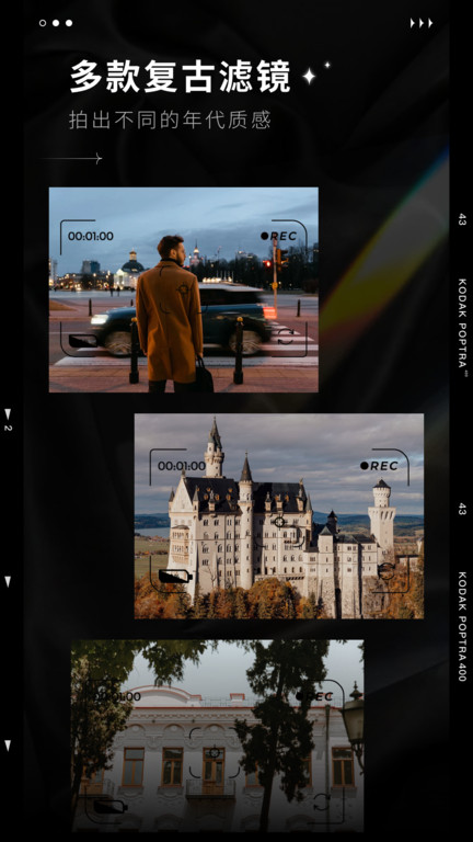 支持胶片滤镜,模拟真实胶片效果,增加照片艺术感。