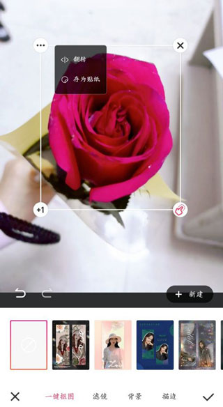 6、点击玫瑰花左上角的“…”将扣下的图片存为贴纸。