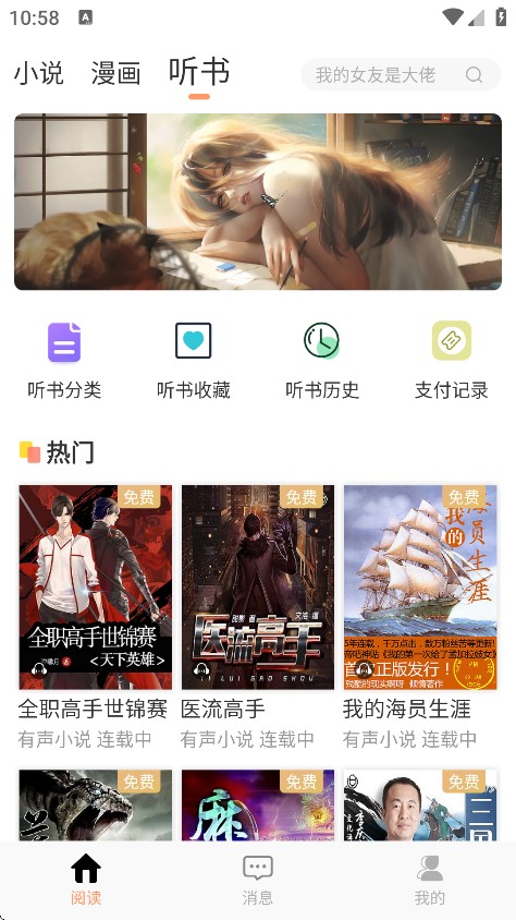 2. 在听书页选择“分类”,浏览各类有声小说资源。