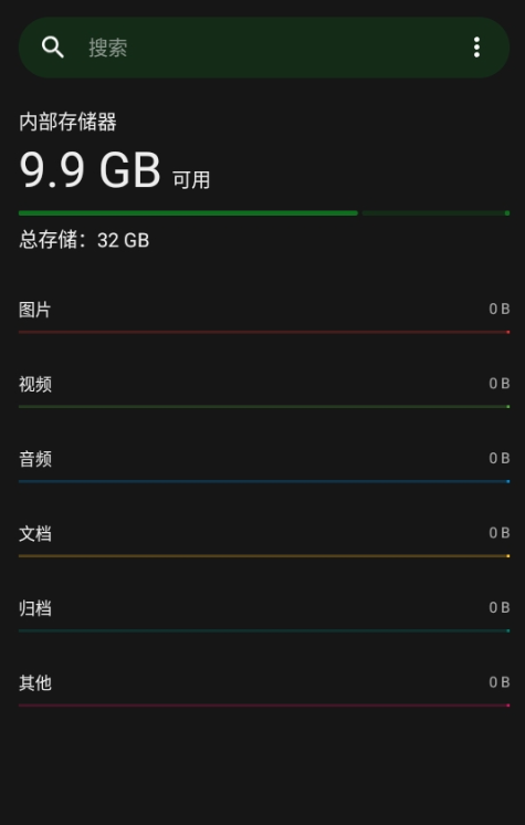 - 进入主界面后,可浏览按类型分类的文件内容。