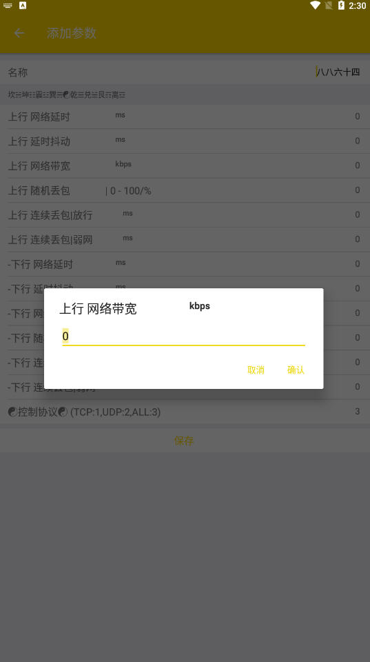 - 根据需求设置上下行延时、抖动、带宽、丢包率等参数。