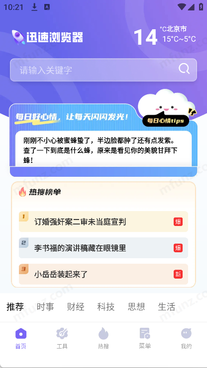迅速浏览器是一款极速且注重隐私保护的多功能手机浏览器应用。内置先进的内核引擎系统,确保网页秒开、浏览流畅,无论是查找资源还是阅读资讯都能获得丝滑体验。应用支持无痕浏览模式,并采用多重安全防护机制,全面保障用户的个人信息与浏览记录安全。同时,每日实时更新全网热搜内容,让用户随时掌握网络热点。工具栏还集成多种实用小工具,满足日常学习、工作和生活中的多样化需求。