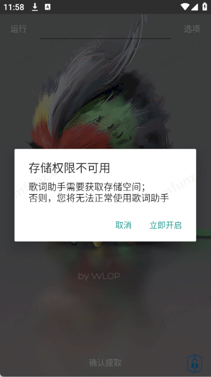 - 打开网易云歌词助手,点击“立即开启”并授予所需权限。