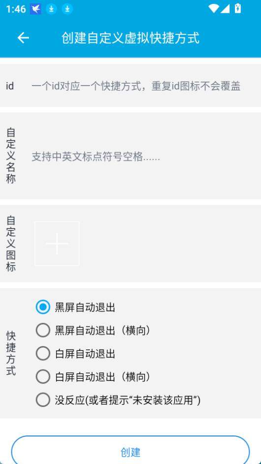 3. 输入自定义ID、名称,选择图标和目标快捷方式,点击【创建】。