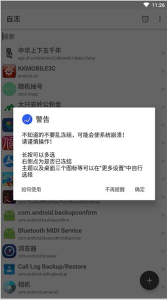 1. 打开FreezeYou后注意查看提示信息,避免误冻关键系统应用导致设备异常。