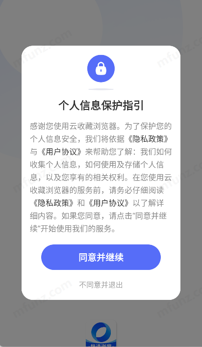 1. 打开云收藏浏览器,点击“同意”进入主界面