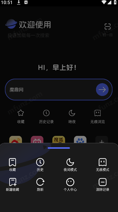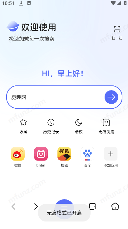 1. 一键开启无痕浏览,不保存历史记录,保护用户隐私安全