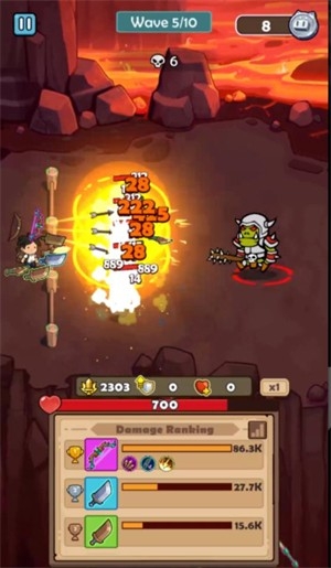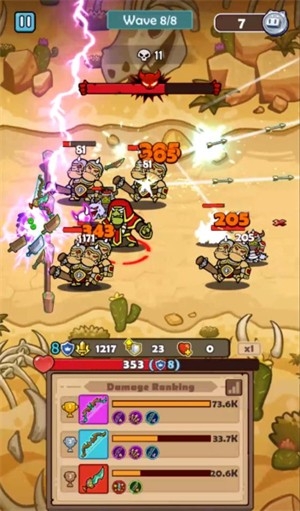 1、在关卡(Wave 5/10)中,面对具有高输出的敌人,需优先观察伤害数值波动,针对高伤害敌人集中火力。