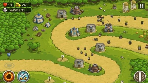 皇家守卫军是一款即时战略性的游戏。游戏的玩法和平常我们所见到的塔防游戏非常类似,但真正玩起来这个游戏更感觉是在打一场战争。为什么这么说呢?因为皇家守卫军采用的主要是军事元素,比如建造的塔有兵营,弓箭塔,炮塔甚至还有法师塔。我们的任务很简单明了,就是守住防线,防止被突破到家园内。