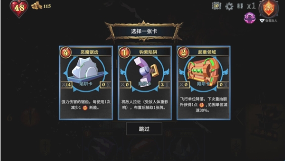 1、数百种不同的致命陷阱可以让你去选择使用,不同的技能卡牌可以构筑你的卡组来闯关。