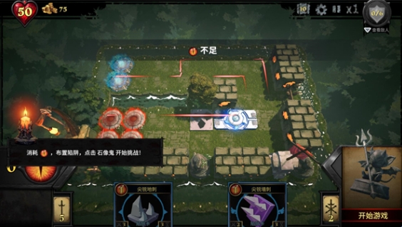 3、进入关卡后玩家可以选择初始陷阱放入地牢,放好不同的陷阱后点击右下方的开始游戏进行闯关。