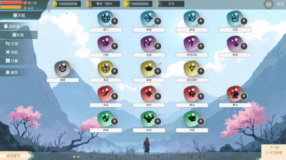 5、点击天赋按钮可以消耗天赋点来解锁不同的能力,每一项天赋都会增加你武将的属性值。
