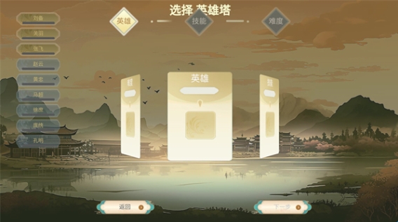 2、点击新游戏后玩家需要选择自己的武将塔、技能以及难度来开始闯关。