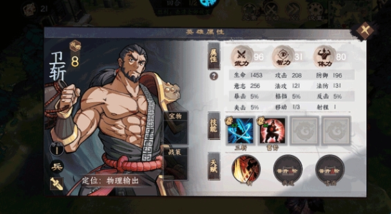 3、在群英觉醒手游中,卫斩是玩家可操控的一类核心战斗角色,属于高攻防兼备的近战武将体系