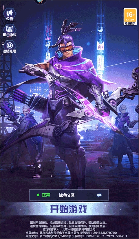 1、运行游戏后,在界面选择好区服之后找到并点击“开始游戏”选项;