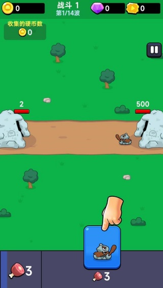 1、食物会自动生产,到了数量3以后,就可以召唤出士兵。