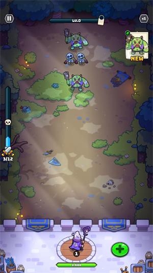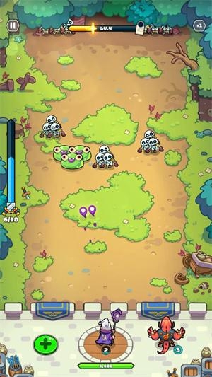 3、消灭怪物会获得经验值,提升等级后玩家可以选择召唤新英雄或者选择一个强化提升英雄的能力。