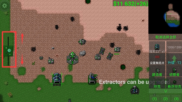 6、如果觉得士兵太小地图不清楚,可以拉动左边的屏幕管理按钮,可以进行放大缩小。