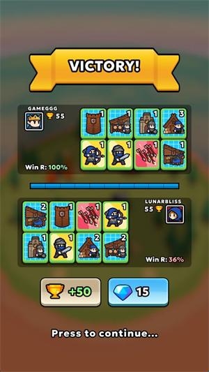 4、召唤小兵摧毁对方的建筑和城堡就可以获得胜利,获胜后可以获得不同的奖励。