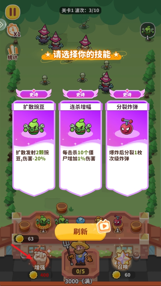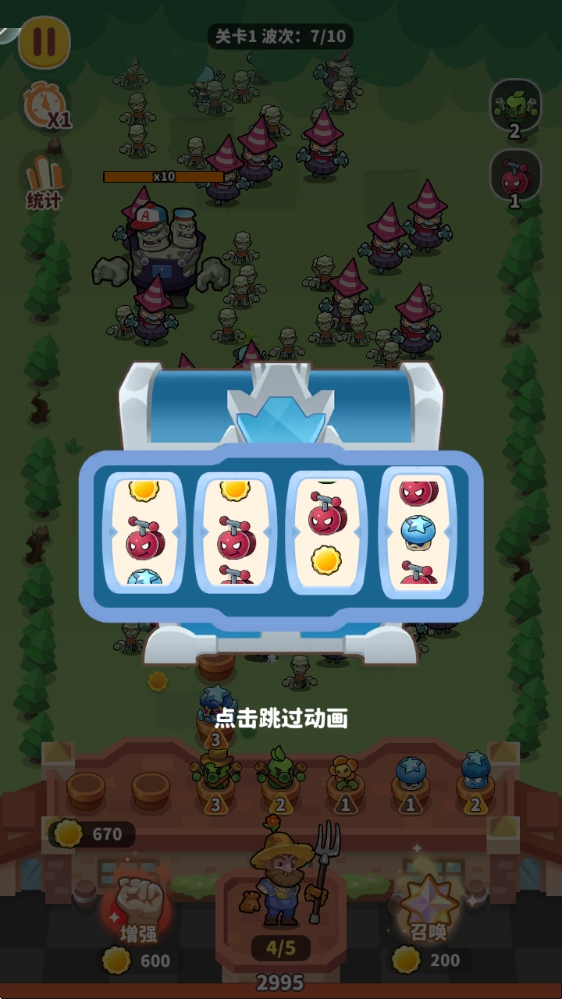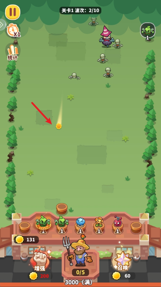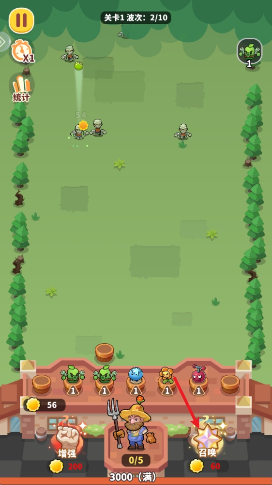 1、游戏中消耗阳光即可随机召唤植物对敌人造成伤害。