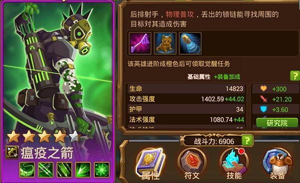 《魔法英雄》中,能够控场的英雄一般都是非常强力,瘟疫之箭不仅自身的伤害极高,且恶魔锁链的的禁锢对方能力更是让其有很强的可塑性,并且是很少几个在后期可以觉醒再度提升自身能力的角色,如果入手,尽管练起来。