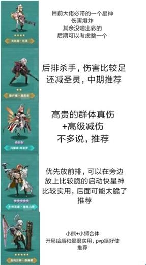 推荐前期使用高星的SR和R星神,如莫安娜和赫斯提亚等。SSR星神,如刀妹和阿波罗等,需达到5星以上才能发挥最大作用,尤其是在PVE和PVP中的强大输出。