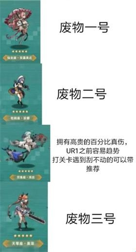 除了刀妹,双鱼这些角色都会慢慢被替代,双鱼没必要升很高,注意不要乱升ur,重生会浪费900钻,护士,猫猫和其他前期一般用不到的sr,r角色前期碎片刚刚够升个u1,u2时,你就直接升了,可以说是纯浪费。女仆用得久一点可以升个u3,篱笆白送碎片,白嫖涩涩。可以升个u5,强度。不推荐投入过多罗盘。