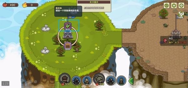 2、进入关卡后,先双击城堡增加采摘果树的农民,积累资源。